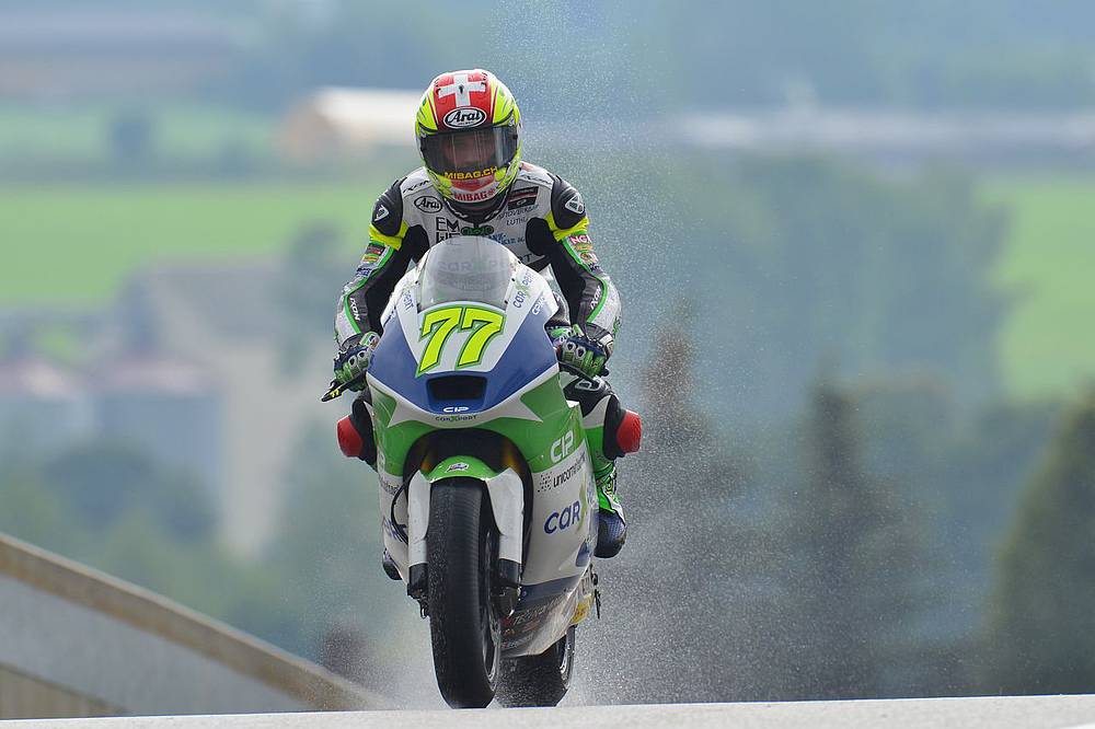 Les essais qualificatifs en vue du GP d'Allemagne de dimanche, sur le circuit du Sachsenring, se sont joué dans des conditions très difficiles. Qualifié avec le quinzième chrono (cinquième ligne de la grille de départ), Dominique Aegerter (Team Technomag-CIP) tire un bilan mitigé de cette journée particulière: "Quinzième sur la grille, c'est trop loin. Mais aujourd'hui, il y a plus important que cela: pour la première fois de la saison, je me suis découvert de bonnes sensations sous la pluie. En début de séance, quand la piste était encore très mouillée, j'ai aligné plusieurs bons tours. Avec les minutes, la trajectoire a séché, mais jamais entièrement. A certains endroits, nous n'avions qu'un bout de piste sèche de 20 cm à disposition. Ce matin, lors de la troisième séance d'essais libres (avant la pluie), j'étais satisfait de mon rythme. Bien sûr qu'avec cette météo capricieuse, nous ne sommes pas encore à 100% de nos possibilités de réglages, mais mes adversaires sont dans la même situation. La course? Si je réussis un bon départ, je devrais pouvoir me battre dans le deuxième groupe", explique Aegerter.